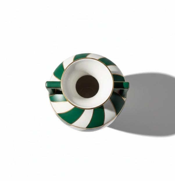 En dekorativ vase med afrundet krop og markant indsnævret midterparti, som udvider sig mod en...