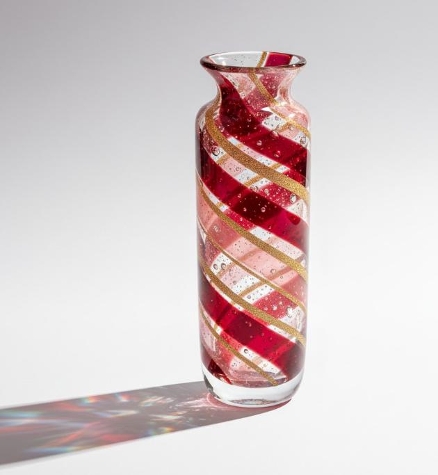 Dekorativ glasvase med spiralformede bånd